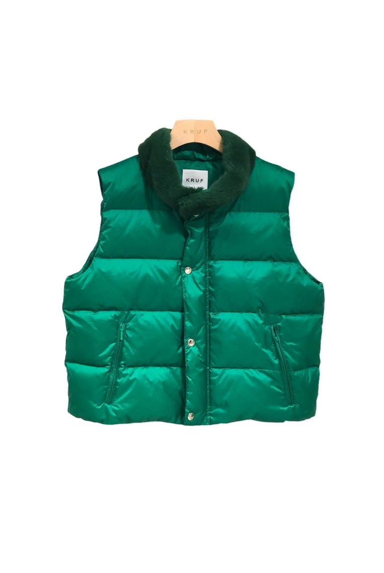 BASIC CROP DOWN VEST WITH MINK COLLAR