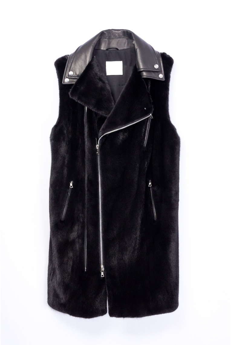 DOUBLE COLLAR MINK LONG BIKER VEST